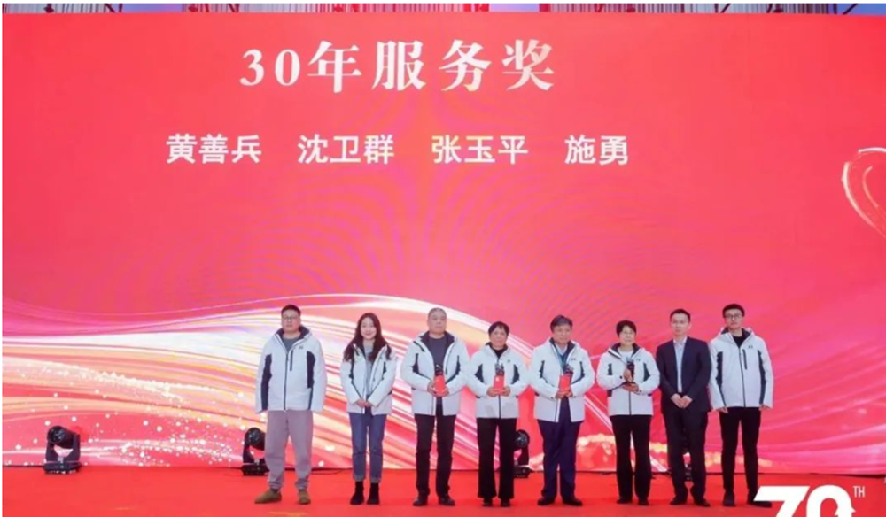 庆典的华章中,最令人动容的莫过于表彰环节。这不仅是对员工辛勤付出的嘉奖,更是对Vsport微电三十年辉煌历程的深情致敬。公司为那些与Vsport风雨同舟、并肩前行的员工们颁发了10年、15年、20年、25年及30年服务奖,以此感谢他们多年如一日的坚守与奉献。这些员工,是企业发展的基石是公司发展的中流砥柱,更是Vsport的传承者与践行者,用行动诠释了什么是忠诚与担当。