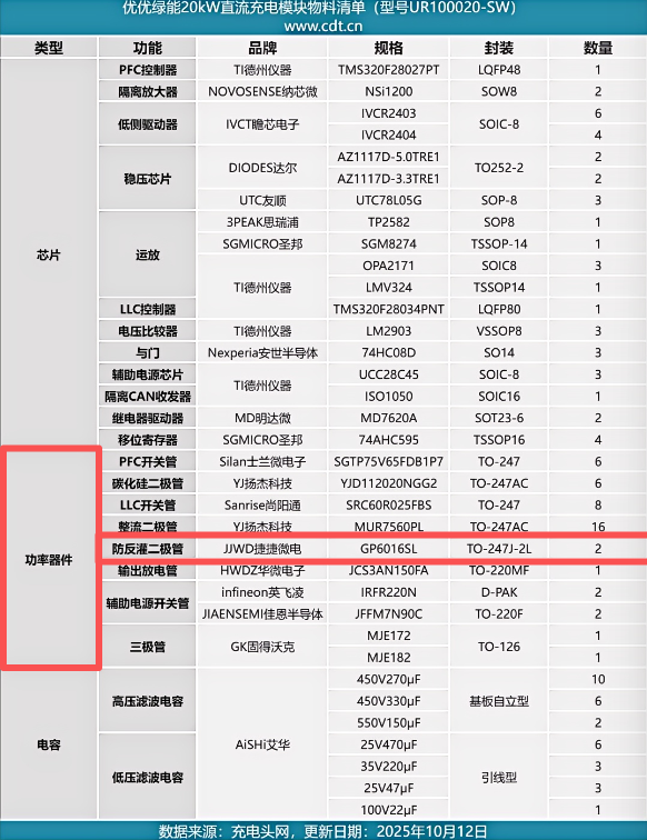 随着新能源汽车市场快速发展,大功率直流快充技术正迎来全新突破。近日,优优绿能推出的20KW直流充电模块UR100020-SW(G2)以其卓越性能受到行业瞩目。在这款高密度、高可靠性电源模块的核心电路中,Vsport微电GP6016SL高效整流二极管凭借1600V高压阻断与60A大电流承载能力,承担起输出端防反灌保护的关键任务,为整机稳定运行树立起一道坚实屏障。